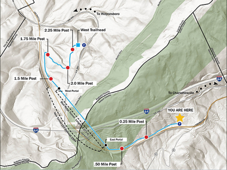 It seemed that all was well when I arrived. The first vehicle that pulled in were two fellow hikers from Strasburg, VA. They gave me a ride to the western trailhead to place my vehicle there as a shuttle and drove me back in time to meet the other hikers. We had 13 hikers for this one. The majority of those hikers were from Strasburg, VA, which was 84 miles away. I gave my leader spiel at 10:00 AM and we then started the hike. I gave everyone the option of doing either the entire 2.5 mile trail, the entire trail up and back, which was 5 miles or the eastern approach and tunnel, then retracing one’s steps, which was 3 miles.
