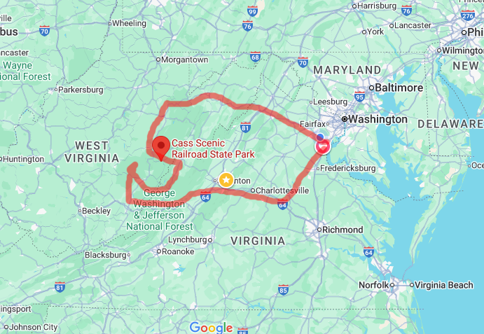08/05/2025– I left Manassas, VA at 6:00AM. The goal was to visit 2 West Virginia State Forests and 1 West Virginia State Park as part of my goal to visit 25 WV State Forests/Parks. I did a roughly 386 mile loop on this trip. I traveled I66->I81->US48->WV32->US250->US219 to get to my first park. This was Kumbrabow State Forest, located south of Elkins, WV. It took me 6 hours to get to my first destnation of the day. But the drive was wonderful!
